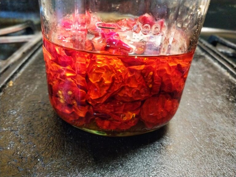 Our summer drought and the hunger of the local groundhog (that’s an entire other story!) have whittled our tomatoes down to a treasured few. If I get another batch of San Marzanos and Principe Borgheses, I’ll get out the dehydrator and olive oil to make another batch of deliciousness.